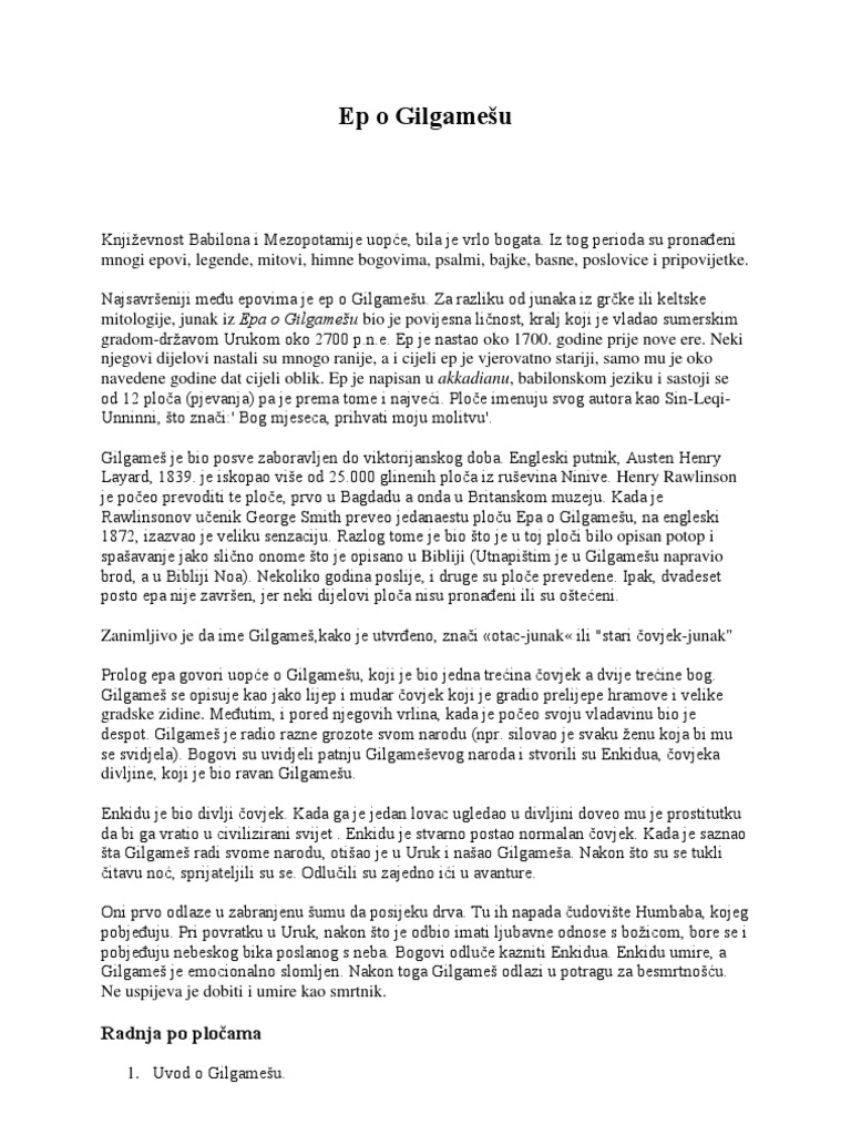 Ep O Gilgamesu Veciti Problemi Ljudske Egzistencije