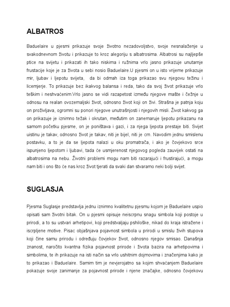 Charles Baudelaire Albatros Suglasja