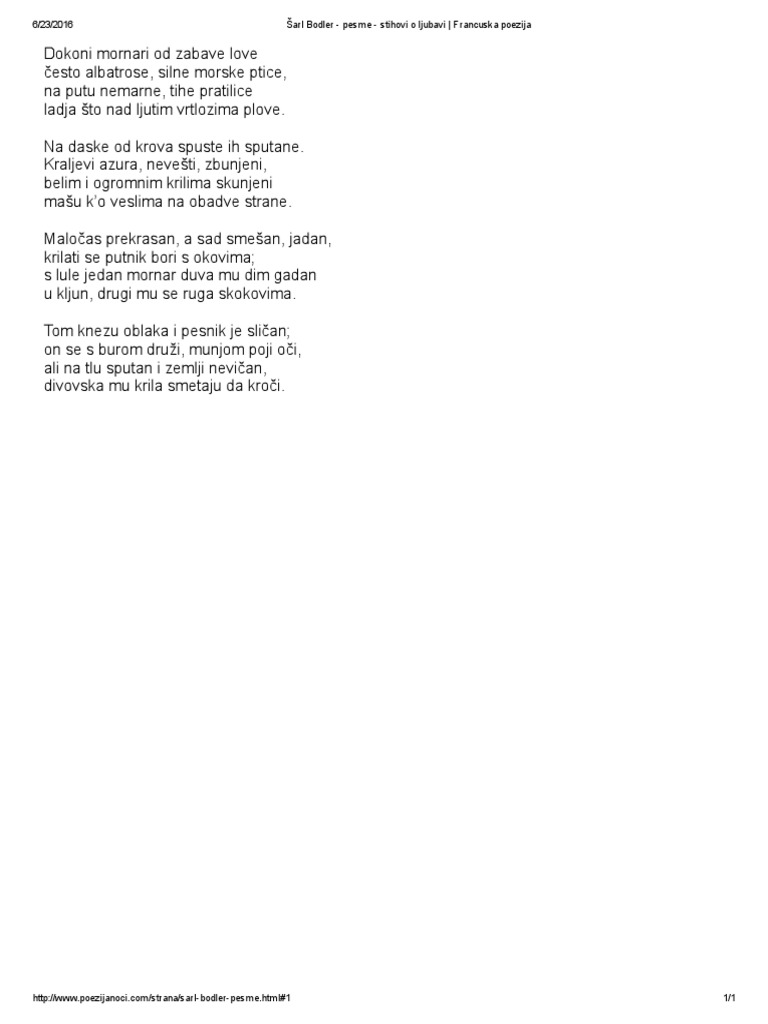 Sarl Bodler Pesme Stihovi O Ljubavi Francuska Poezija