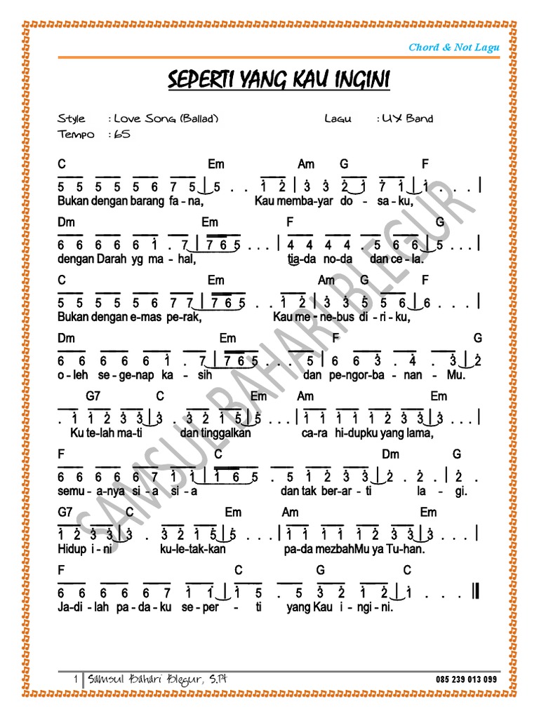 Chord Dan Not Angka Lagu Seperti Yang Partitur Not Angka Karaoke Lagu Facebook