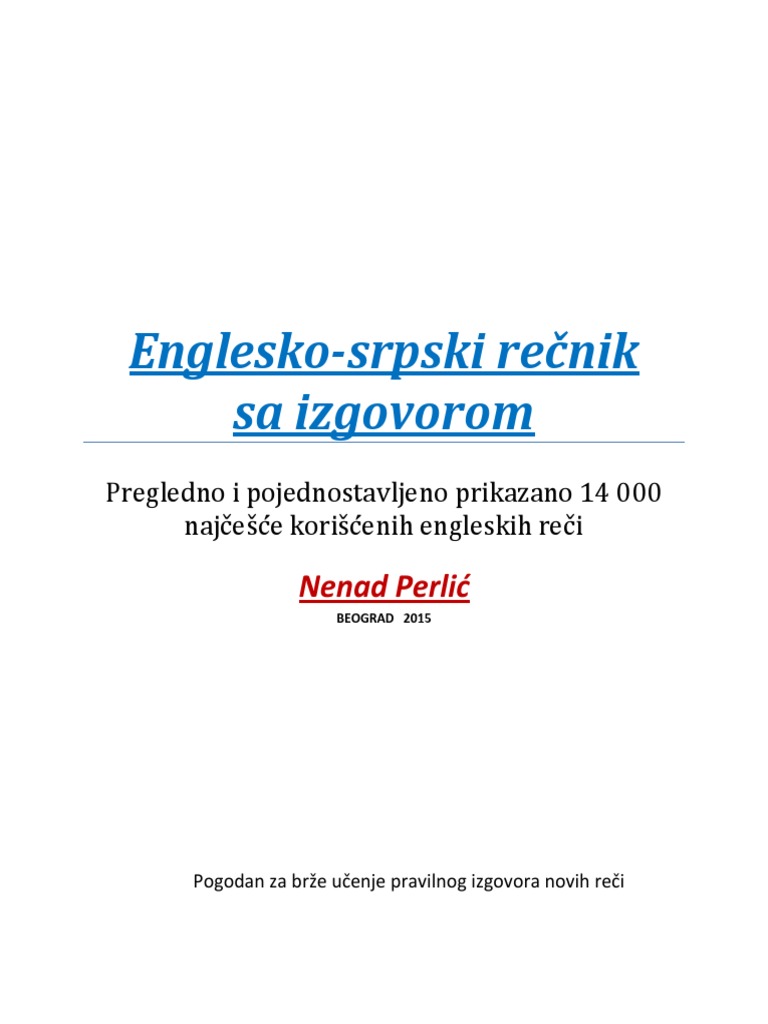 Englesko Srpski Rijecnik Sa Izgovorom Free