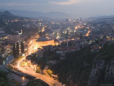 Panoramic Night View Of The City Sarajevo Bosnia Bosnia