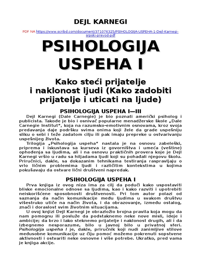 Psihologija Uspeha 1 Dejl Karnegi Srpski Prevod Word 2003