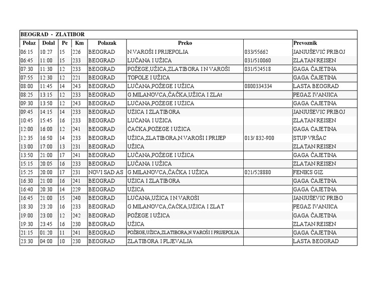 Red Voznje Zlatibor Beograd